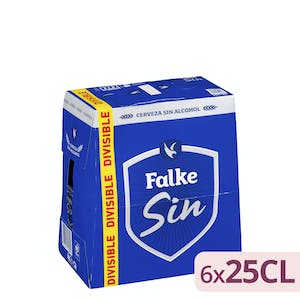 La Cerveza sin alcohol Falke se presenta en un formato de 6 botellines de 250 ml cada uno. Con un precio de 2,10 €, este producto se clasifica dentro de la categoría de Cerveza botella y botellín.